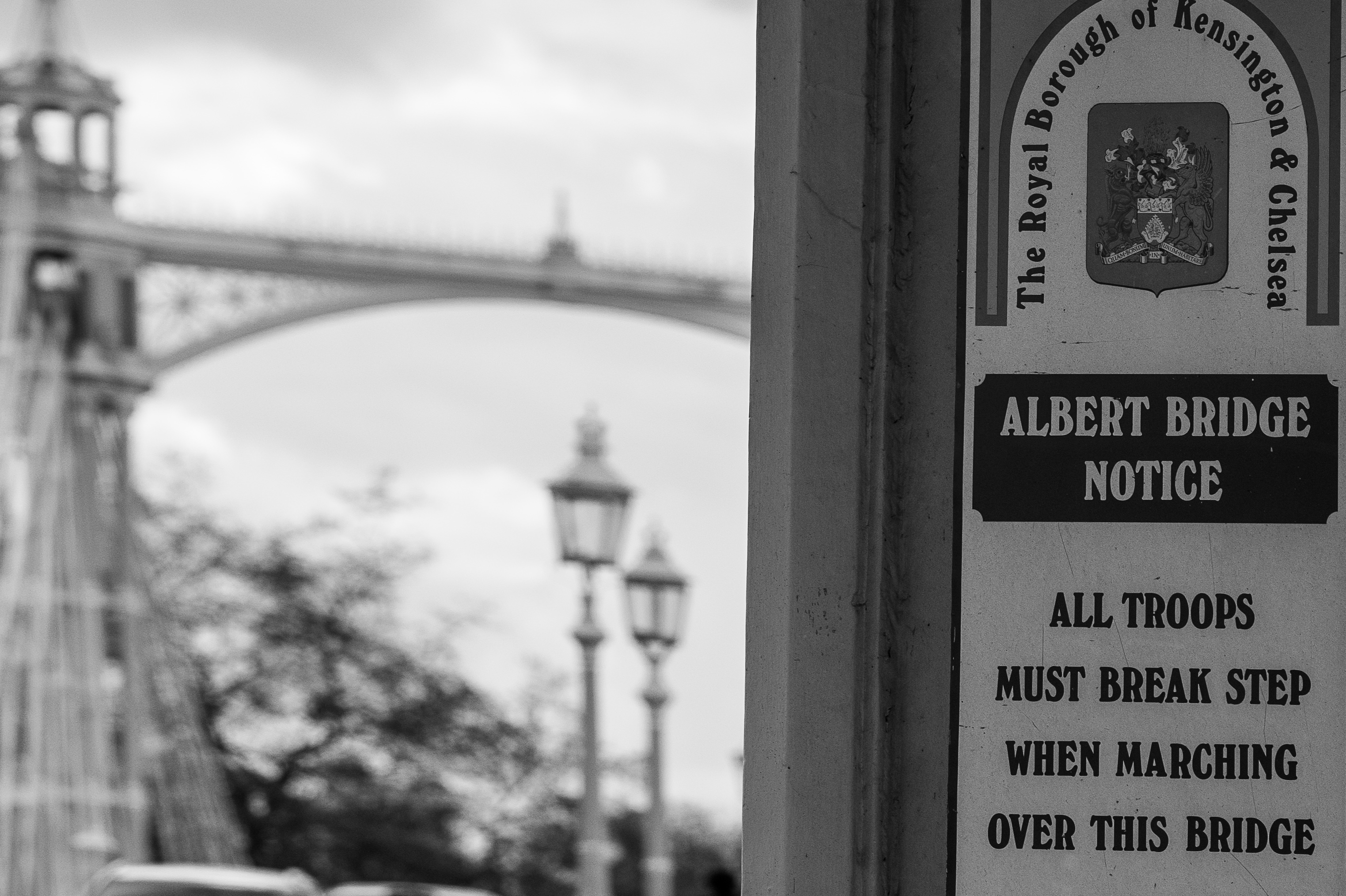 However, within moments of the bridge's opening, it began to wobble violently, to the great embarrassment of its designers — Arup Engineering and architect Norman Foster. In the process earning the nickname the "Wobbly Bridge." The swaying came as a surprise, as no such outcome had been predicted by Arup's extensive computer modeling and human testing. It is well known that soldiers marching across bridges can cause them to collapse; the reason why they are asked to break step when crossing bridges. Marching soldiers generate harmonized frequencies that can create feedback between the internal frequency of a bridge and soldiers' steps, leading to a collapse. If you look closely, you can often see signs on bridges telling soldiers to break step when marching, as the photo in the figure below I took of the Albert Bridge in London.